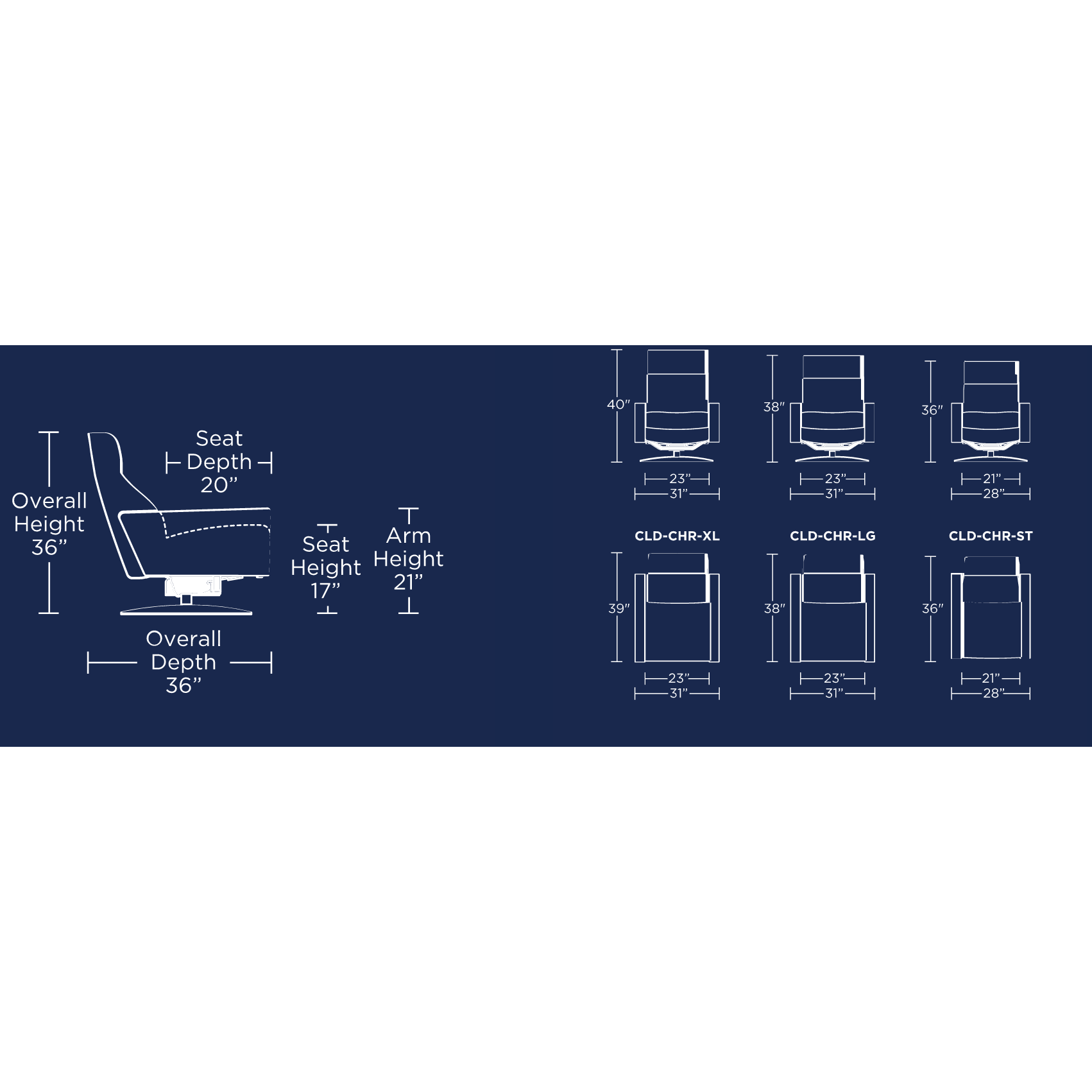 The Cloud features a tailored track arm and chic, customizable base. Choose from a disc base available in Natural Walnut or Brushed Metal, or a four star base available in in Antique Brass, Burnished Bronze, or Polished Nickel. The Cloud is available in three sizes, custom engineered to fit every body type. A revolutionary, patented mechanism responds to your every move and provides infinite way to relax.