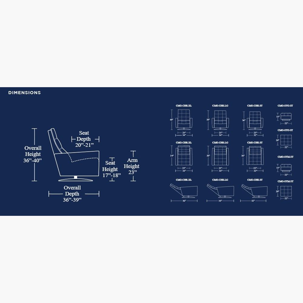 Contoured taper arms nearly reach the floor give Como its graceful, timeless silhouette. The plush buttonless tufting on the back and seat cushions provide superior comfort with every move. This zero-gravity recliner allows you to experience the comfort and feel of an afternoon boat ride on calm waters – from the comfort of your living room. Design yours with our collection of premium leather and fabric. Choose from four bases, including an all-new stylish natural walnut four-star base.