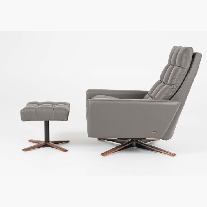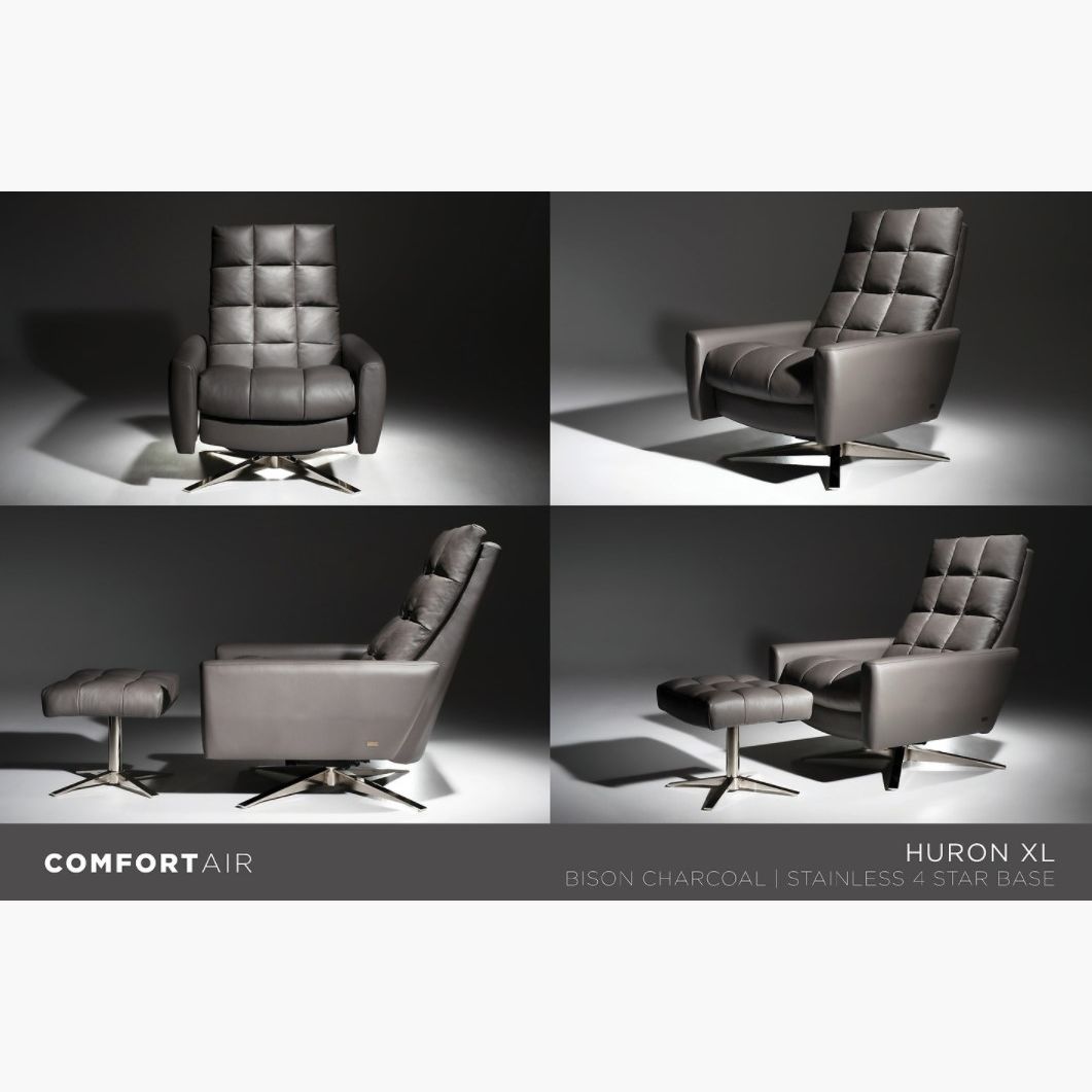 Its asymmetrical curvature construction of both back and seat cushions deliver supreme comfort. The zero-gravity lounge chair mechanism allows Huron to conform perfectly to your body to give the feeling of floating. This yacht-worthy Comfort Air™ features splayed track arms and a waterfall back and seat cushion for a premium seating experience. Take modern lounging to a new level by adding an ottoman and an all-new natural walnut four-star base