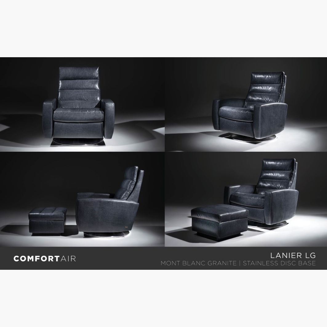 Channel quilting on both the back and seat cushions encase you for the best reclining experience. Lanier’s low profile follows the shape of classic automotive designs as it tapers in width from top to bottom. Discover remarkable comfort in every hand-stitched detail of this modern rocking chair. Add an optional glider ottoman to your Lanier recliner chair and rock back and forth in pure comfortable bliss. Enjoy a comfortable ride in this Comfort Air style.