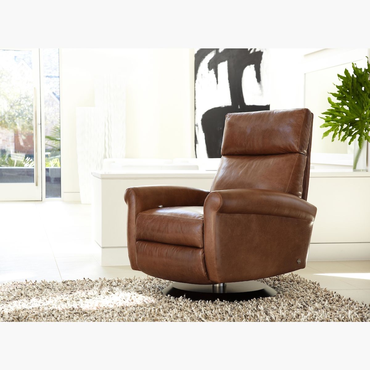 Our Comfort Recliners™ resolve the dilemma of reclining chairs because not only do they sit beautifully but they look great, too. The back and footrest operate independently and are infinitely adjustable so that you can find the sitting position that's perfect for you. A modern take on a classic look, Adley boasts a delicate rolled arm that will blend with transitional, traditional and eclectic decors. The curvy, sleek frame and subtle curves are accentuated by single-needle topstitching. Specify swivel Stainless Steel, and two wood base options or stationary wood legs in Natural Walnut or Gray Ash.