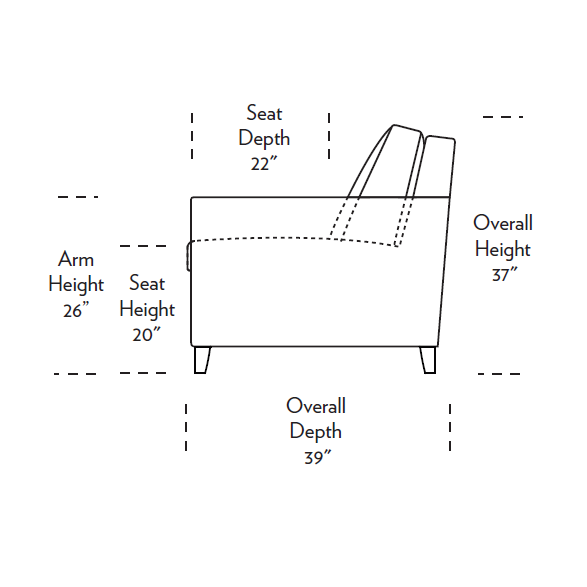 Harris brings an elegance to any space. The stunning, shapely wood leg mirrors the slight curve of the inside of the arm, creating a soft, tailored look.