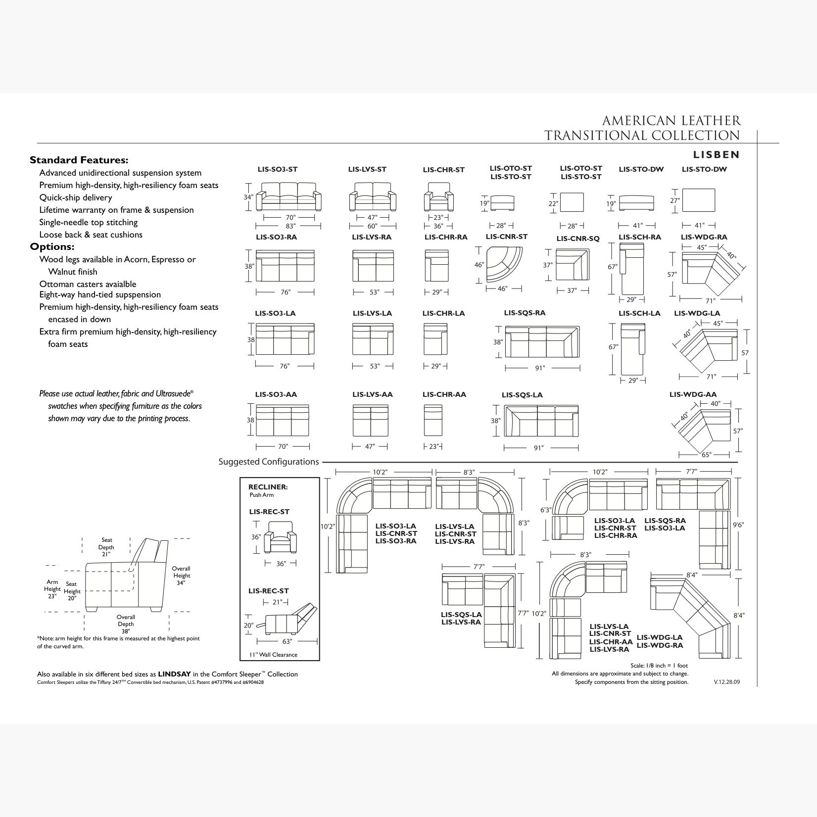 Verve and versatility mark the ever-popular Lisben collection, with its almost infinite array of sectional configurations. Suitable for any setting, the grouping features tight angular arms with loose back seat cushions – plus single needle topstitching that adds artisan appeal. Optional additions include down seat cushions and traditional eight-way hand-tied suspension.