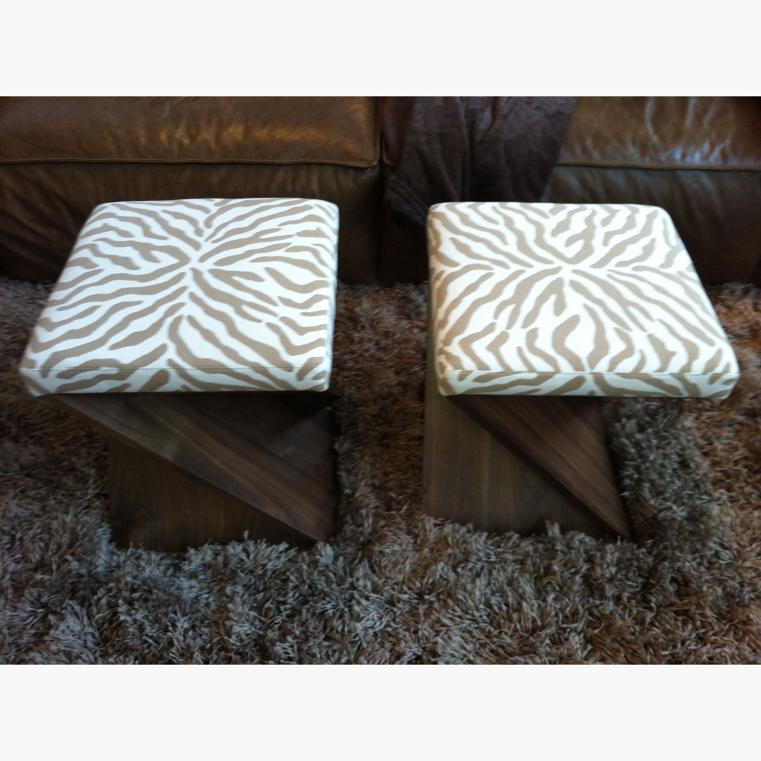 The Maxwell ottoman's solid walnut base is an eye-catching addition to any room whether sitting as a single or grouped in pairs or trios. The top-stitched, upholstered cover is available in hundreds of leathers and fabrics creating a versatile accent with wide appeal.