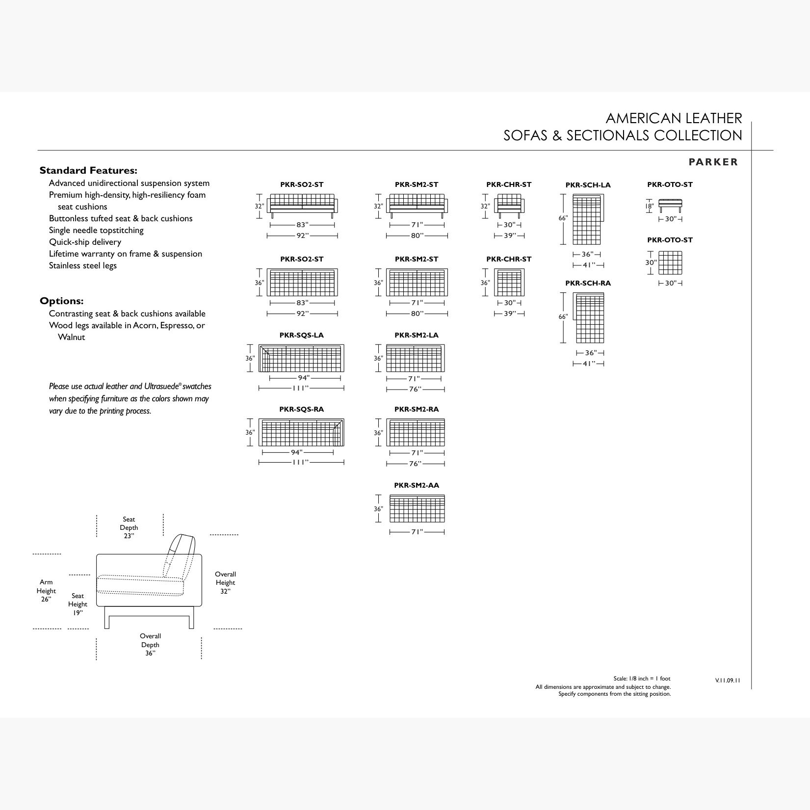 The Parker is an American Leather engineering innovation: the softest rendition of a tight back, tight seat sofa ever made. Elongated 42” cushions, detailed biscuit tufting, and clean arms emphasize the architectural feel of this style. The entire silhouette rests on your choice of metal or wood legs that stretch front to back and are slightly offset for that special ingredient.