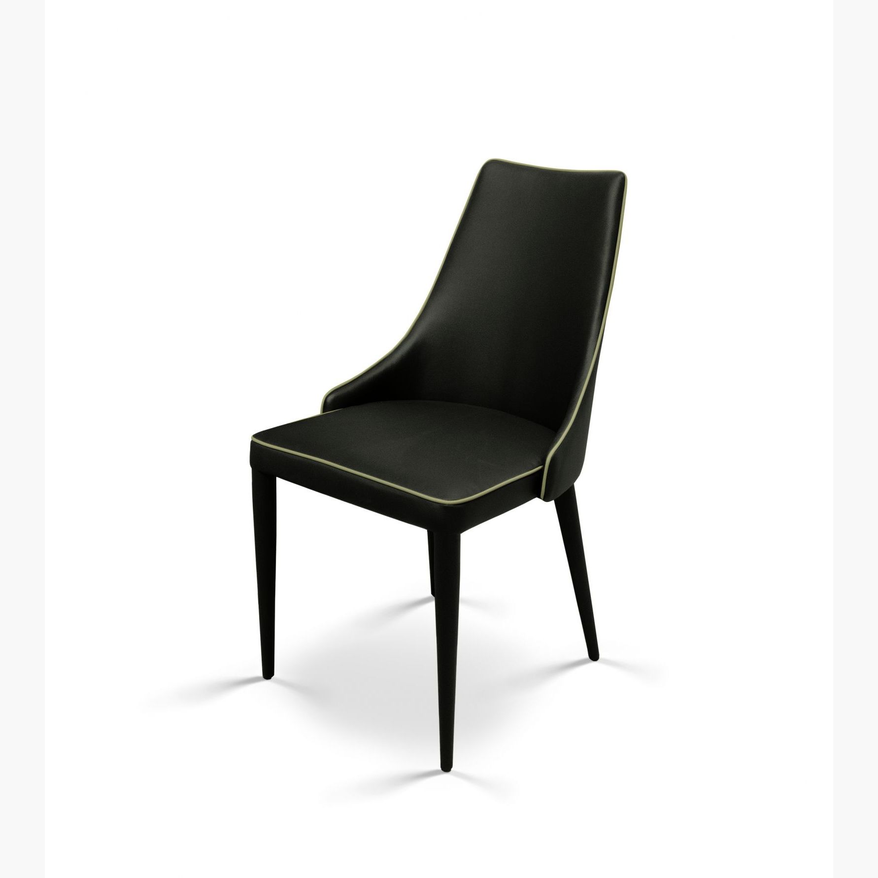 Chair with metal frame upholstered and covered with padded ecoleather and cordonet in contrast color: