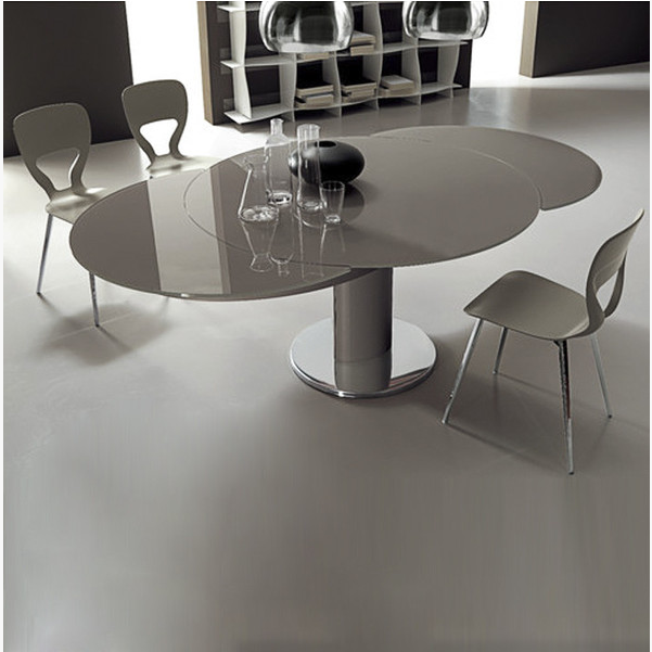 With the Giro Extendable Dining Table’s simple mechanism, you can rotate the central top, causing the extensions to come out from beneath the table. When you continue to rotate, the central top is forced down while the extensions are forced up, causing them to become closer to each other. Closing the table is very easy – all you have to do is rotate the opposite way. The closed table seats 4 comfortable, while the extended table seats 8.