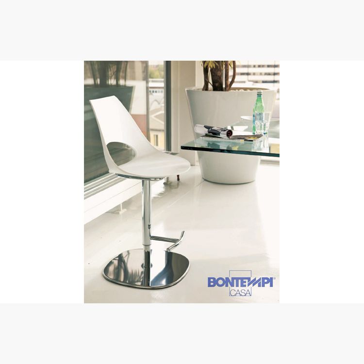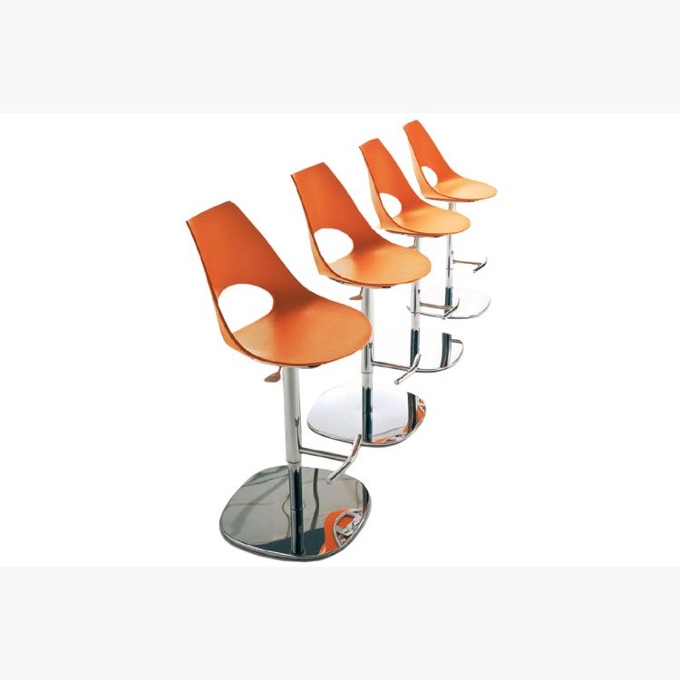 The Shark piston stool has a uniquely shaped seat and back in polypropylene with no hard angles or sharp corners, offering ergonomic lumber support for comfort over long periods. Its well-spaced legs, in chromed steel, provide extra stability. This chair offers the widest possible application,