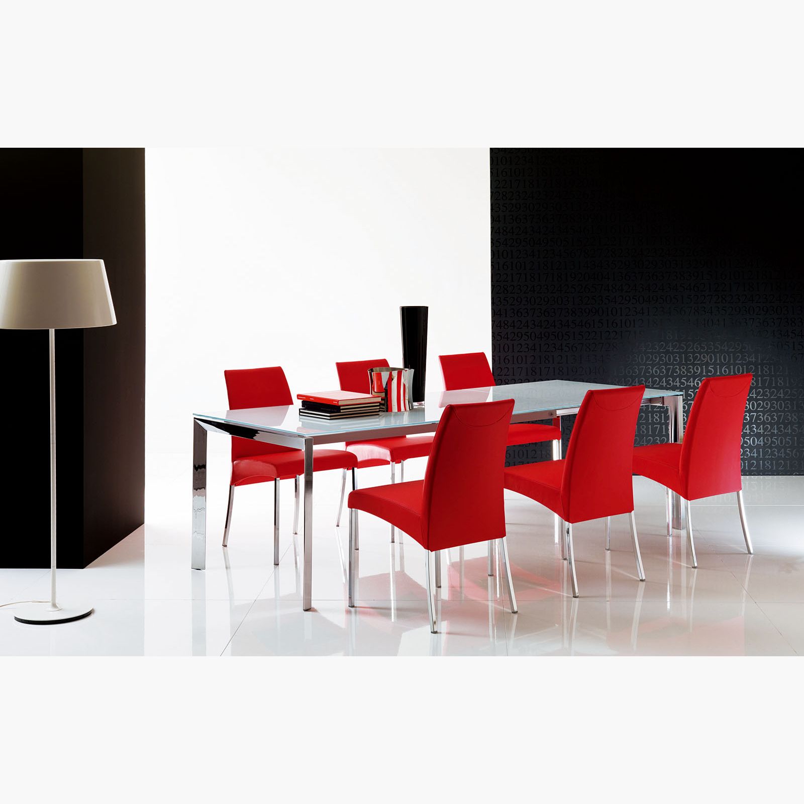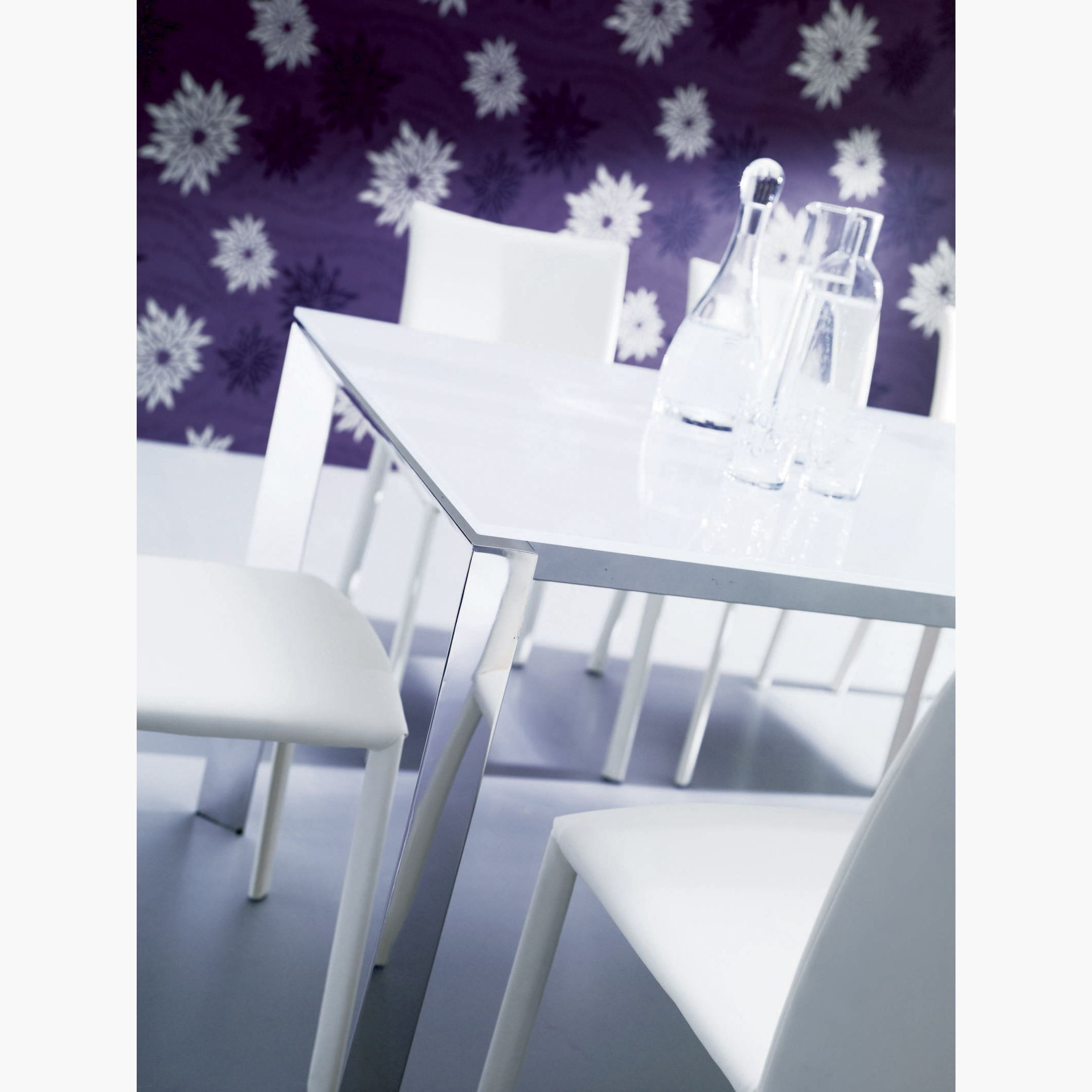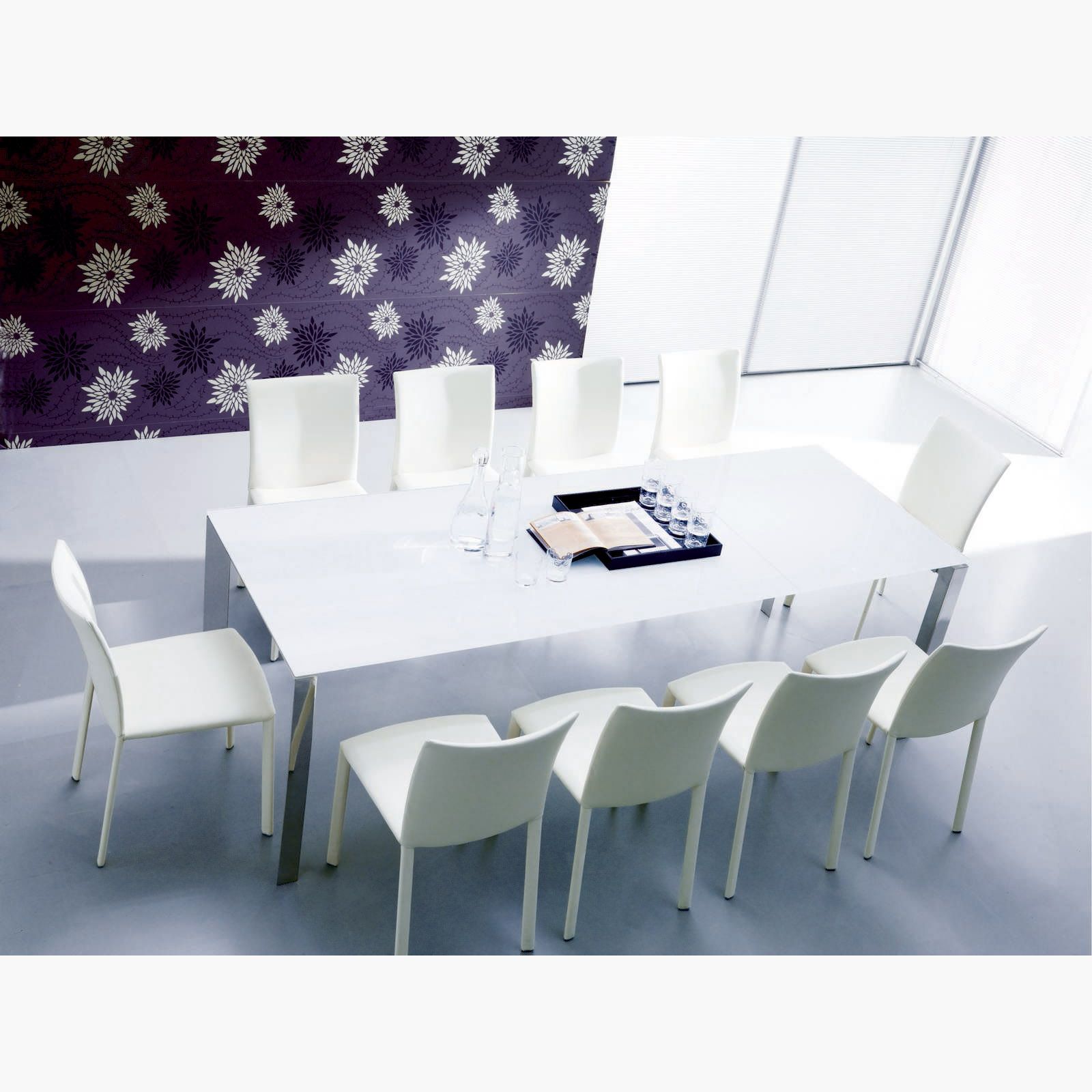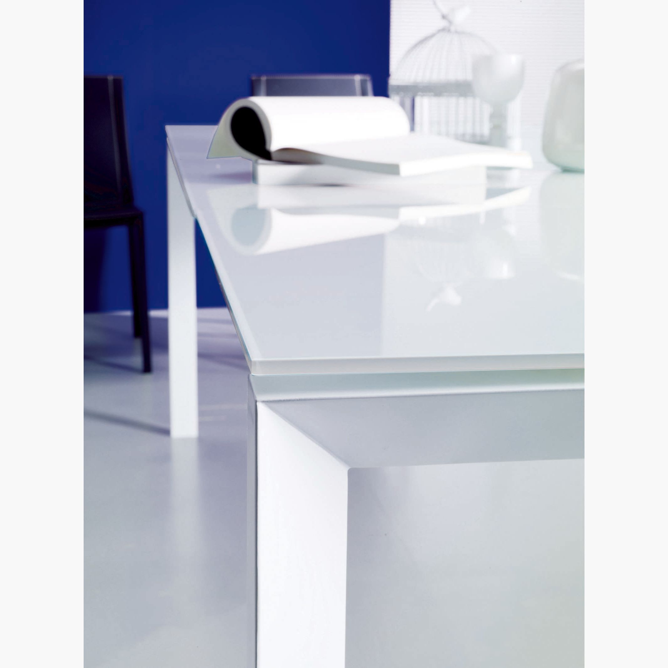 Designed by: Erresse Studio The sleek and versatile Sirio Extension Table combines high performance with elegant aesthetics. The extendable extra-white glass top is integrated into the chromed metal frame and with a simple movement the extension is positioned flush with the surface.