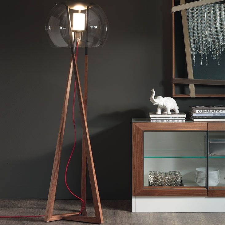 Floor lamp with frame in Canaletto walnut (NC) or burned oak (RB) and matt graphite (OP69) steel.