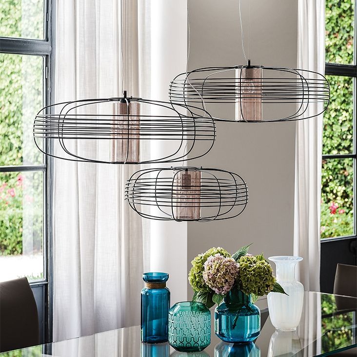 Ceiling lamp with matt black (OP17) painted steel or Nickel frame.