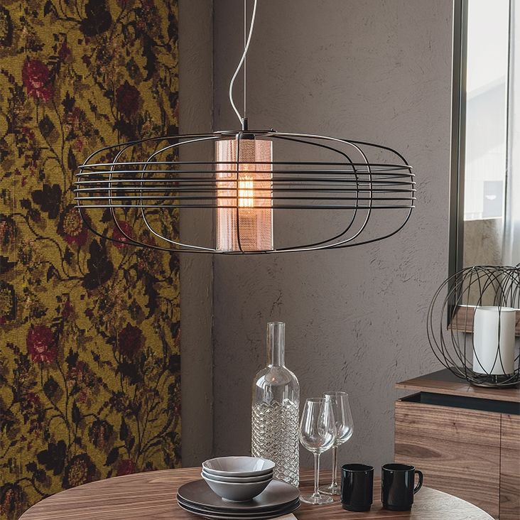 Lampshade in borosilicate glass and copper net.