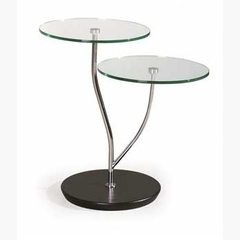The DUETTO from Kube Imports has two clear glass 10mm thick tops held up by chrome plated arms and balanced by a heavy black marble base.