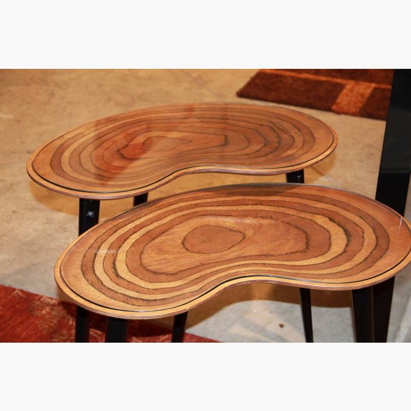 Description:  Natural organic wood top as shown with glass insets & Legs in Black Lacquer