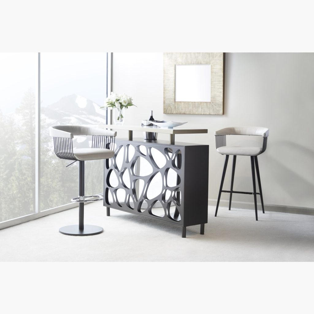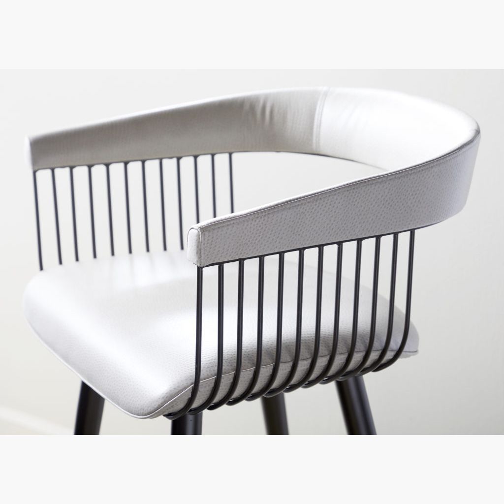 . Gianna features delicate tracery in steel wire to create a slinky, yet elegant, feminine presence with an airy, transparent ambience. Sleekly tailored upholstery provides comfort and support, while the softly contoured polished chrome footrest adds some extra bling. Gianna can be easily paired with any Elite bar or pub table to create a soft, sexy contemporary statement.