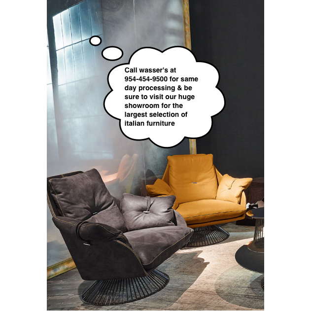 Customize it any way you want. You can choose from a extensive range of leathers & choice of finishes on the polyurethaine resin frame. The metal swivel base is available in painted finishes or chrome. Outside shell is also available in leather. IN STOCK & QUICKSHIP FROM WASSER'S.