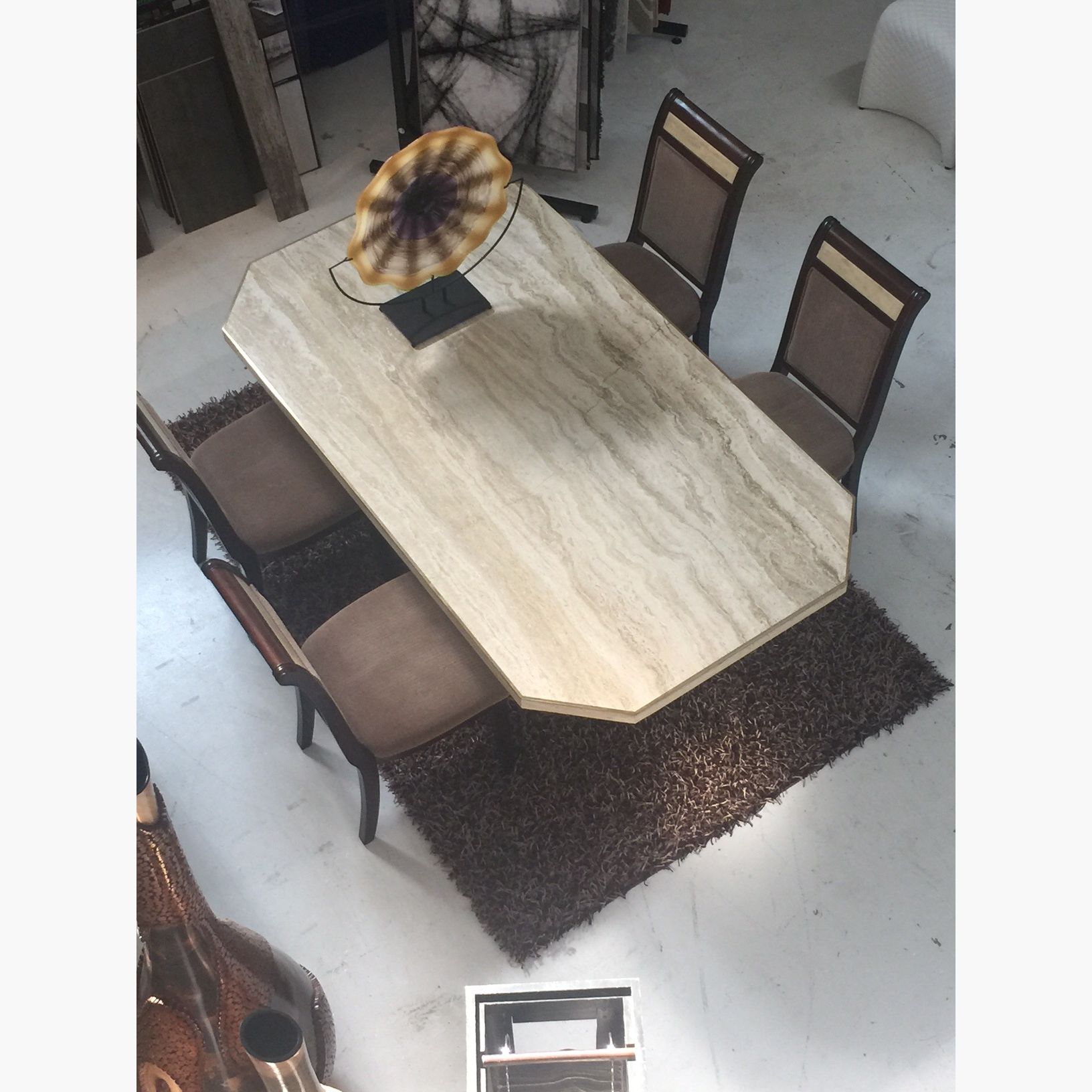 Travertine marble inset on chair back