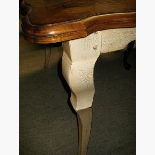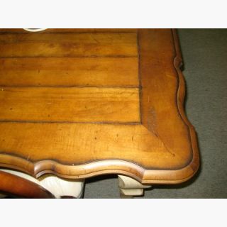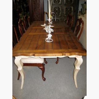 Optional: Extension Dining Table with distressed plank top with shaped edges.