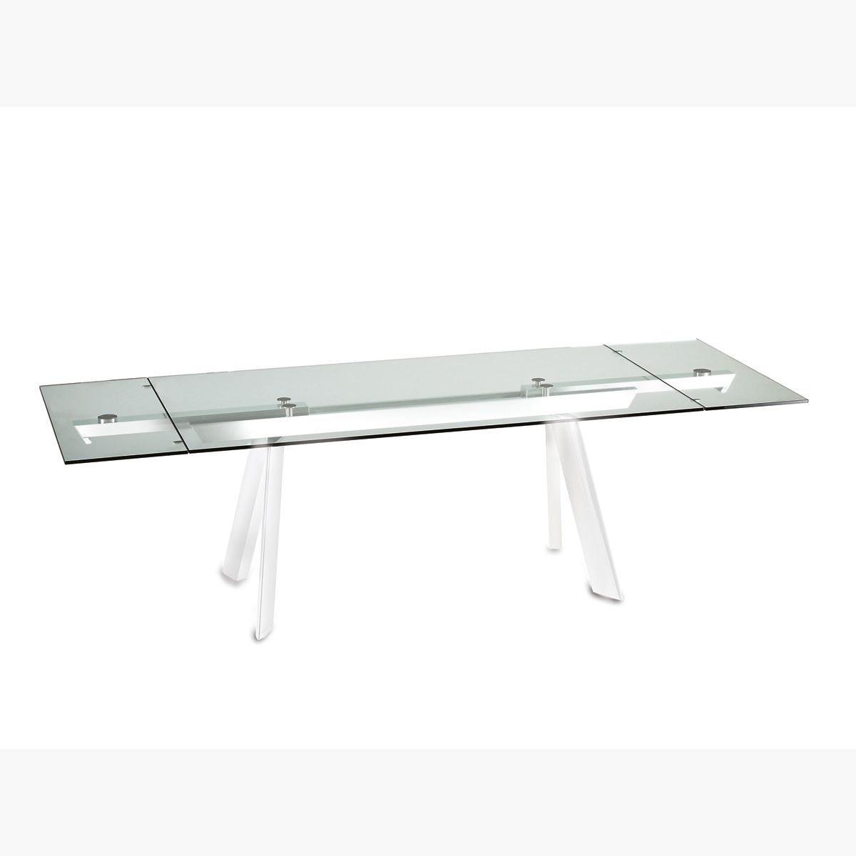 Felix Dining Table by Naos is a contemporary glass top dining table. This modern extendable dining table has a retangular glass top with painted aluminum base.