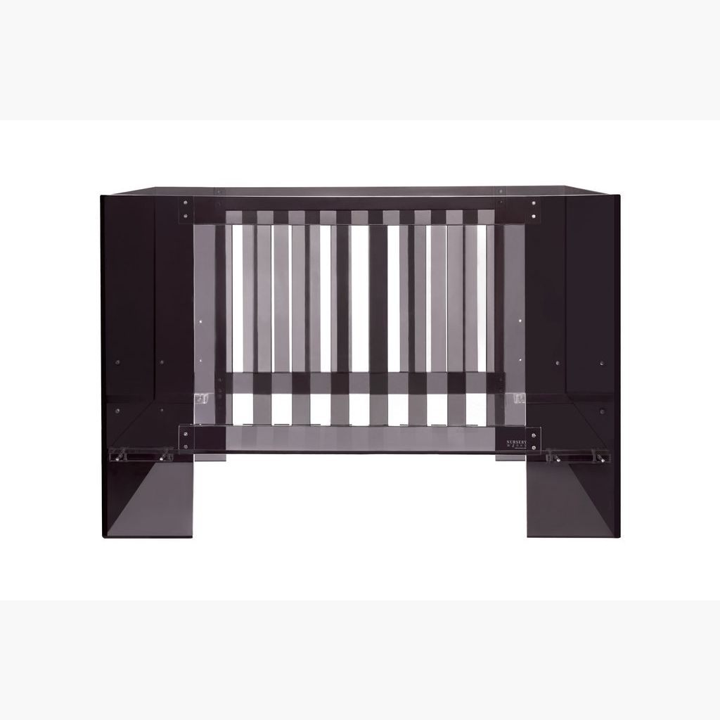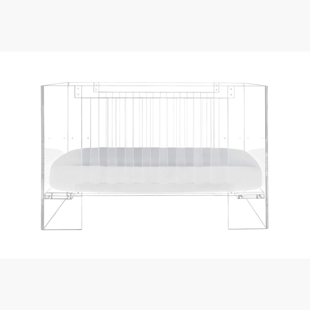 A signature Nursery Works original and the first 100 percent recyclable, non-toxic acrylic crib on the market, the Vetro combines utility, purity and understated beauty. It is exclusively handcrafted and laser-etched with a unique limited edition number. Clear sides provide an unimpeded view of infant and nursery.