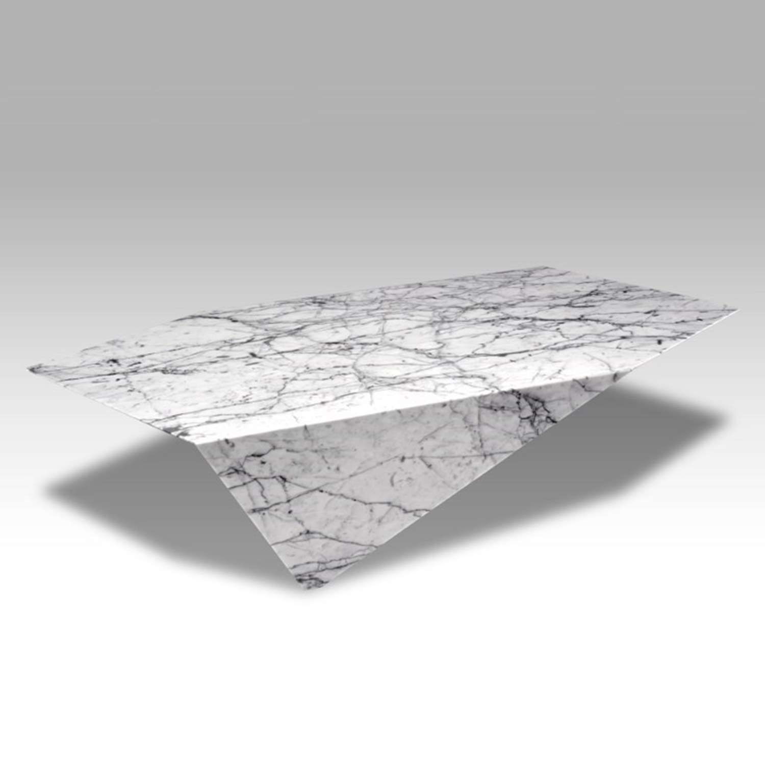 The unusual shape and name of this table derive from the Italian word for the second tablecloth placed over the original one in a restaurant. The marble comes from centuries-old quarries in Carrara, Italy. A truly unique design from award-winning Giulio Lazzotti.