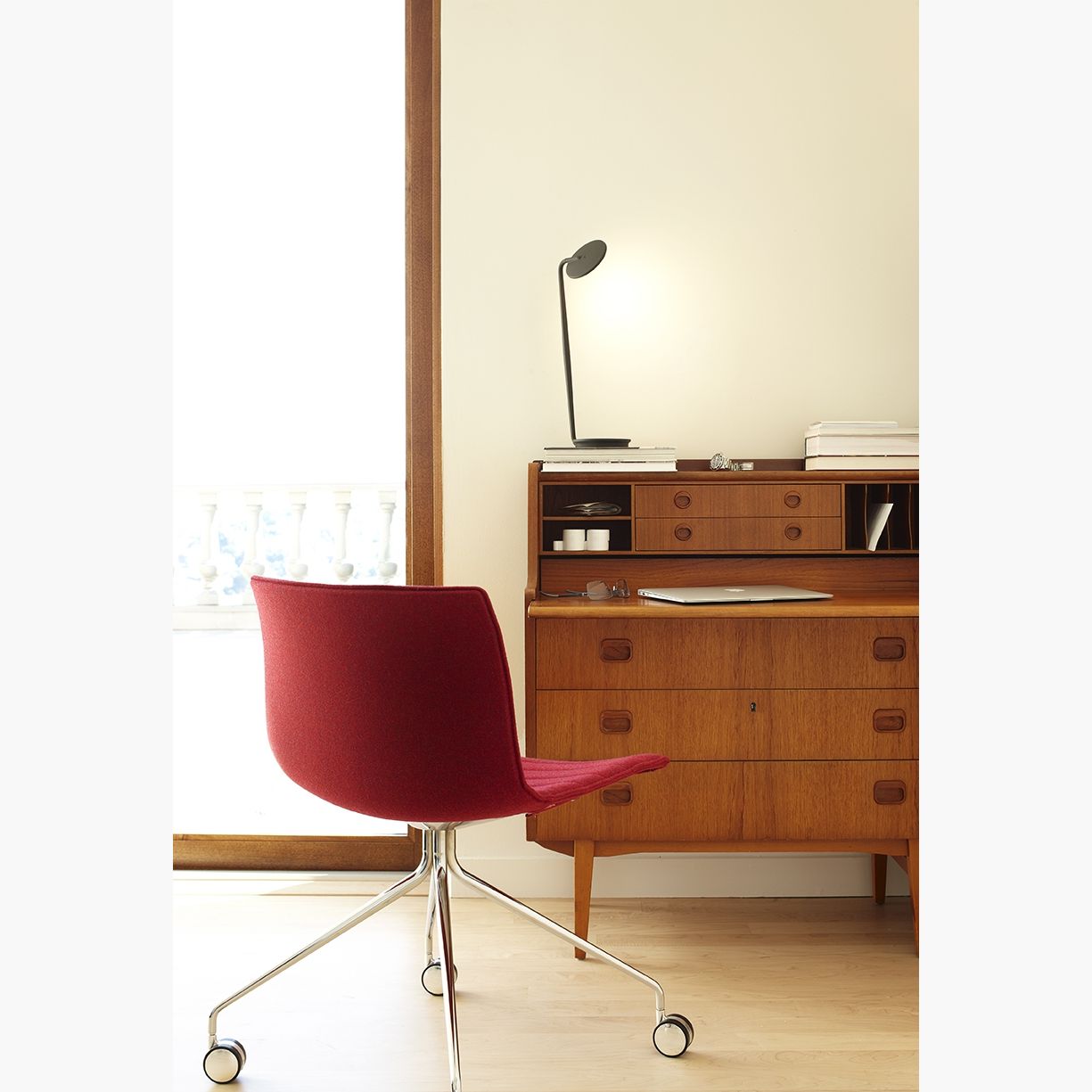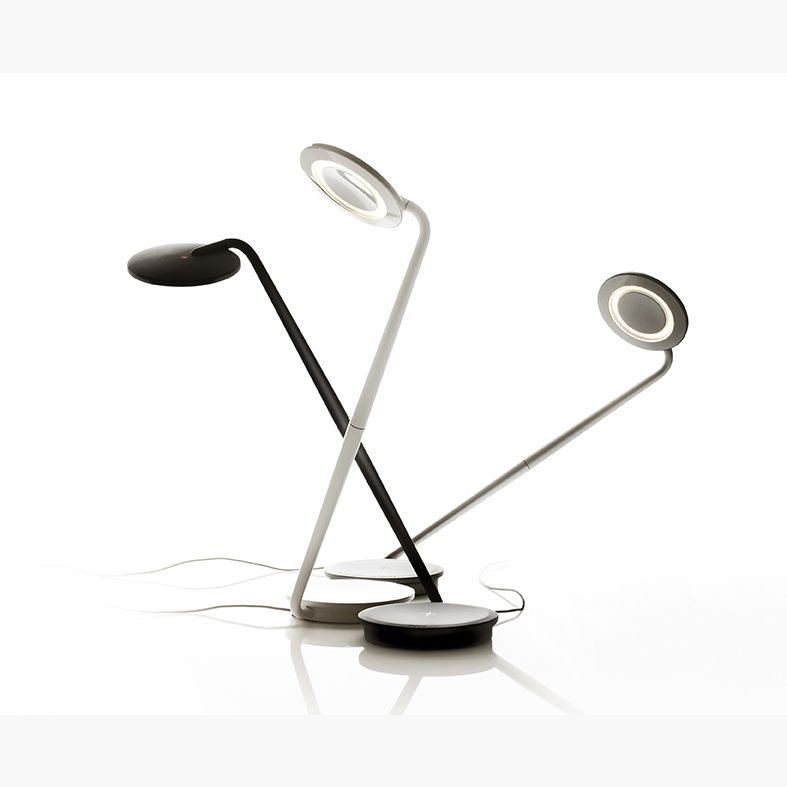 Although it embodies an emotive, humanistic form, Pixo, at its conceptual core, is an ultra-efficient task light. Functionality and necessity drive its design. It makes the most of its frame and its space through every feature: Pixo's swiveling light shade and highly maneuverable arm lend it maximum utility within a minimal footprint. Its compact, energy-saving LED light is infinitely adjustable, allowing the user to focus