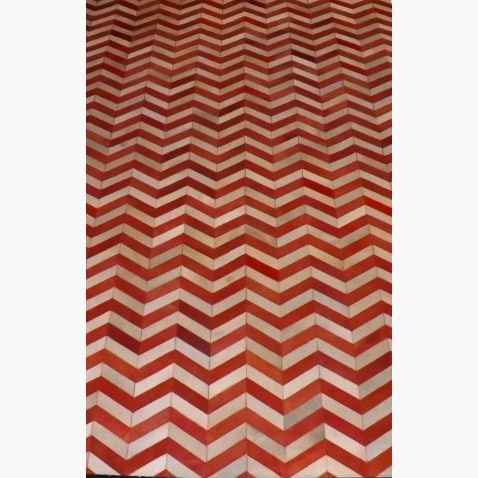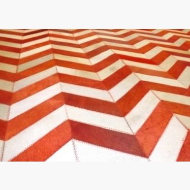 Pavoncello naturals Collection Chevron Hair on Hide Area Rug in Orange and White